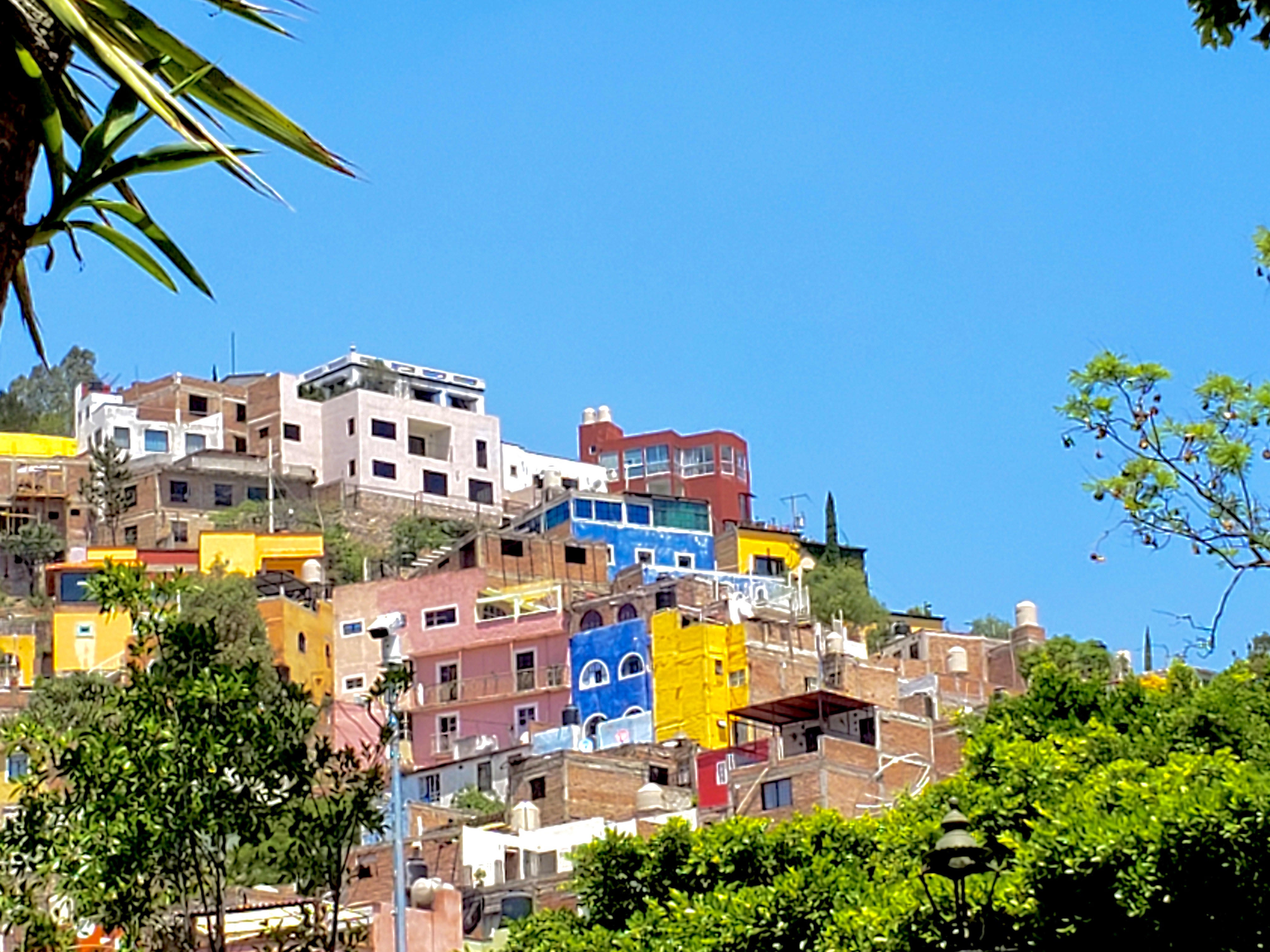 Guanajuato is largely a pedestrian city, a maze of cobblestone streets, little alleyways, and narrow stairs. It is in the shape of a bowl or basin, with the city center in the lowest part, and all else built up the steep hills. It’s a wonderful walking city to meander around in. The hills are steep, footing is uneven and cobblestone in places. Bring good walking shoes – consider leaving your high heels at home! Florecer Casitas is almost to the rim of the bowl and the property has a good slope to it. If you have any mobility issues, talk to me before you decide about this trip.